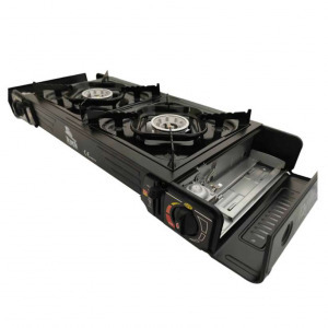- A népszerű hordozható táskás gázfőző dupla változata. A két égőfejet két külön palack táplálja.